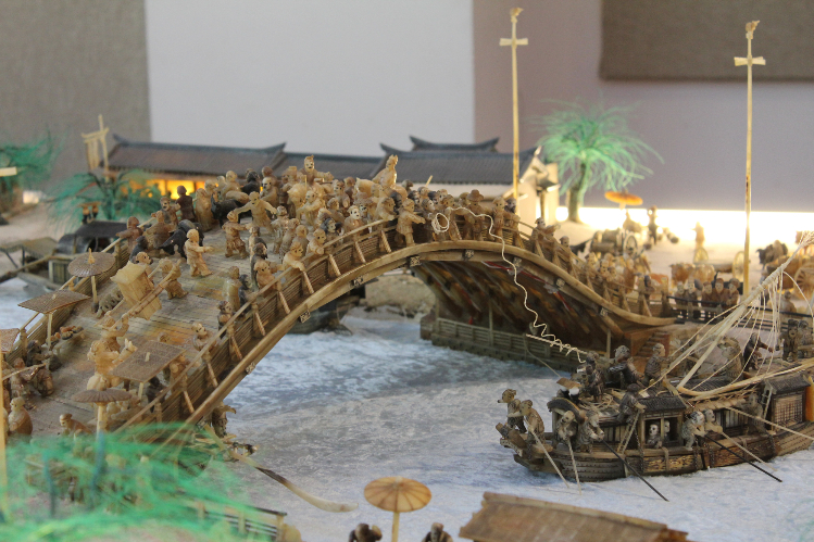 参评作品牦牛角立体微雕“清明上河图”。(图片来源:中新社)