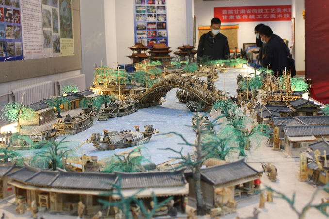 5月10日,由中国甘肃省工业和信息化厅主办,来自全省的近800件作品进入专家评审环节。图为参评作品牦牛角立体微雕“清明上河图”的局部。(图片来源:中新社)