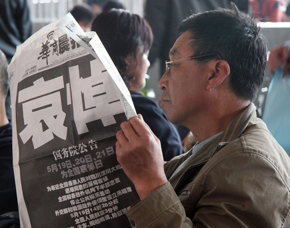 群众哀悼四川汶川大地震遇难者。(图片来源:中新社)
