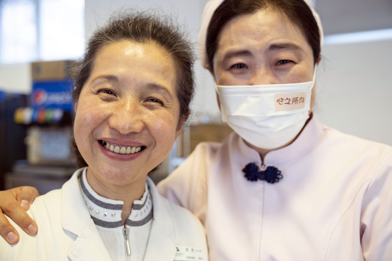 5月11日,在北京按摩医院举行的国际护士节庆祝活动上,工作15年的护士郑君霞(右)哭着与当年刚工作就带着自己的护士李欣老师合影留念。(图片来源:本文图片除标注外均自新华社)