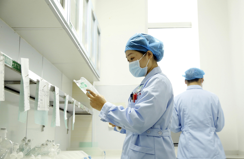 5月11日,河北省邢台市襄都区医院护士在配药。