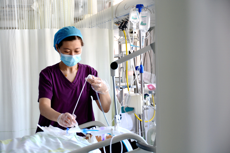 5月11日,河北省秦皇岛市工人医院护士在护理重症患者。