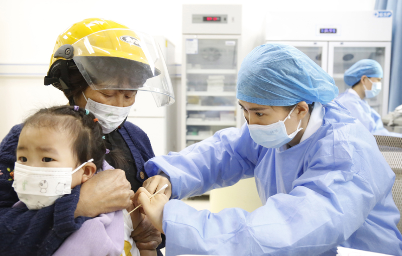 5月11日,河北省邢台市襄都区医院护士在给小朋友接种疫苗。