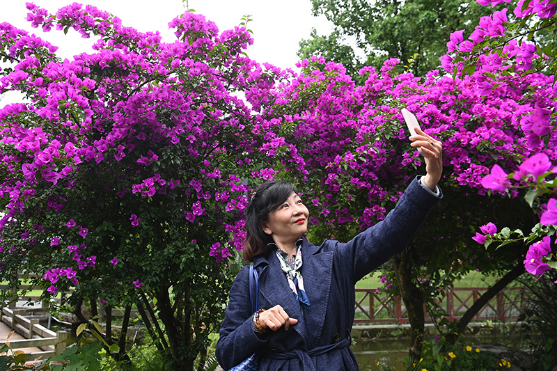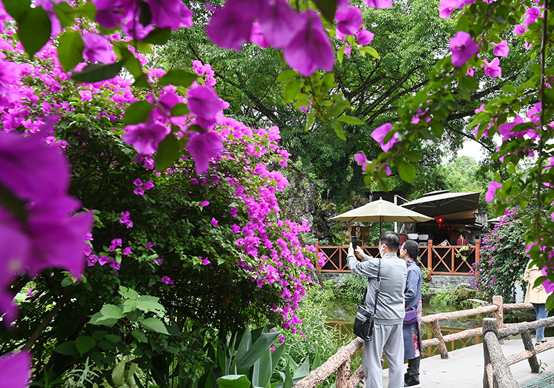 5月15日,四川省成都市百花潭公园内三角梅盛开,吸引市民驻足观赏。(图片来源:本文图片综编自中新社)