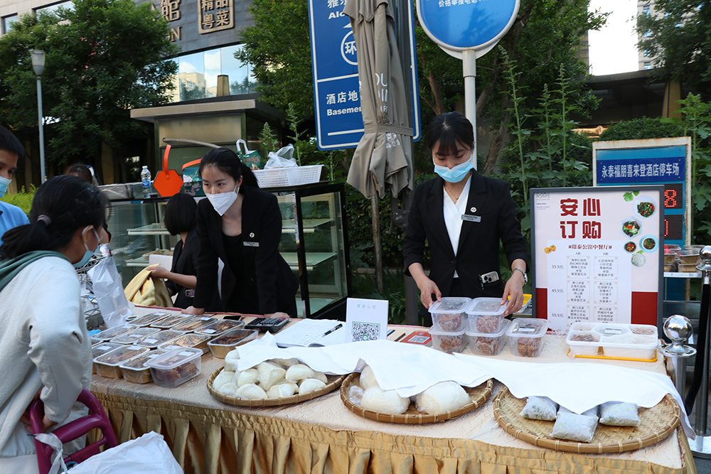 市民在北京海淀区喜来登福朋饭店的预制菜摊位前挑选快餐制品。(图片来源:中新社)