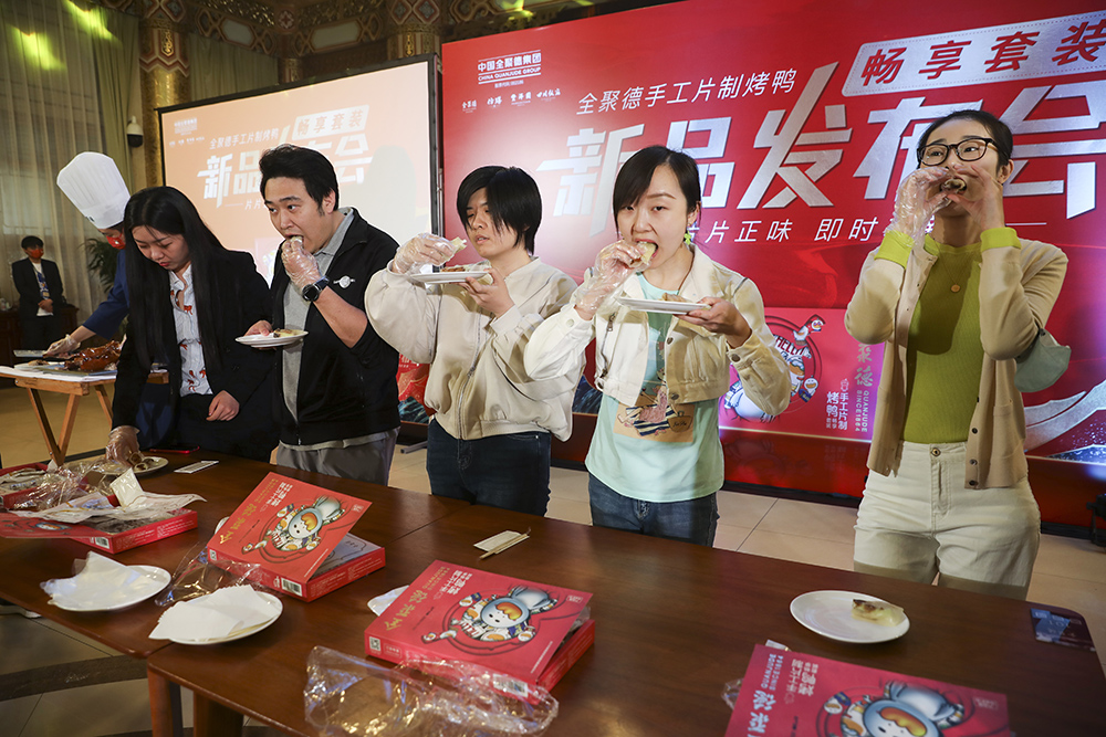 老字号发布预制菜新品,全聚德“单人份”手工片制烤鸭即将上市。(图片来源:中新社)