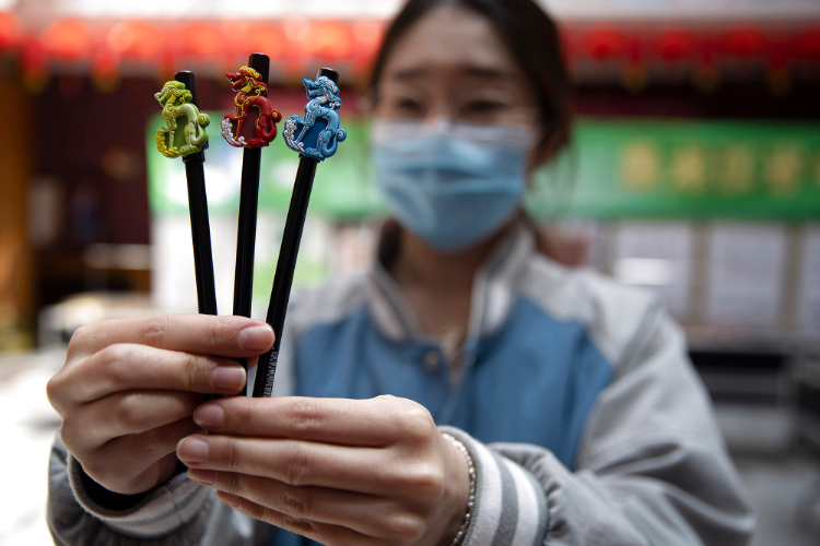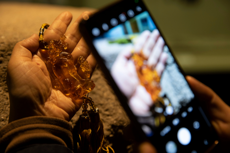 黑龙江省博物馆收藏的铜坐龙是金代早中期器物,出土于哈尔滨市阿城区金上京会宁府遗址,为国家一级文物,是黑龙江省博物馆的“镇馆之宝”。近年来,黑龙江省博物馆以铜坐龙为原型设计了一批文创产品,兼具收藏性与实用性,深受游客喜爱。图为16日,工作人员拍摄以铜坐龙为原型设计的琉璃饰品。