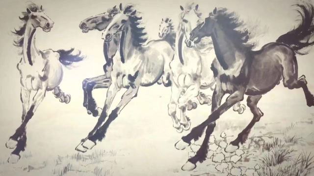 拥有西洋绘画基础的徐悲鸿,创作的《奔马》让人们感受到了一种完全不同的中国画技法和马匹扑面而来的生命力。徐悲鸿在创作《奔马》时正处在画作创作的巅峰时期,因此他落笔尤其笃定,既得奔马之形,让水墨肌理呈现出前所未有的立体透视感;又得奔马之神,赋予了画作一种雄健的,不可遏制的力度感。