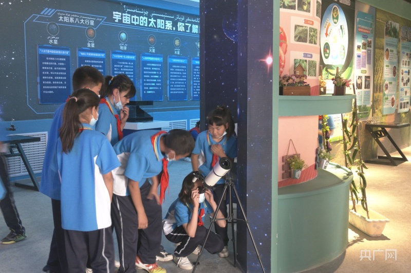 近日,新疆巴音郭楞蒙古自治州科协、库尔勒市科协和尉犁县科协联合开展科普大篷车联盟科技志愿服务行活动走进尉犁县墩阔坦乡和喀尔曲尕乡,为当地群众送去丰富的科普知识。图为学生们有序参观科普馆(图片来源:央广网)