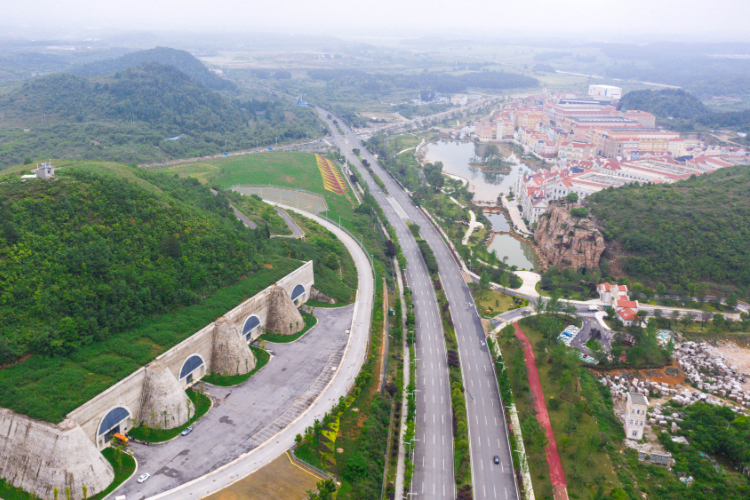 贵安新区华为云数据中心(以道路为界右侧)和腾讯贵安七星数据中心(左侧)。