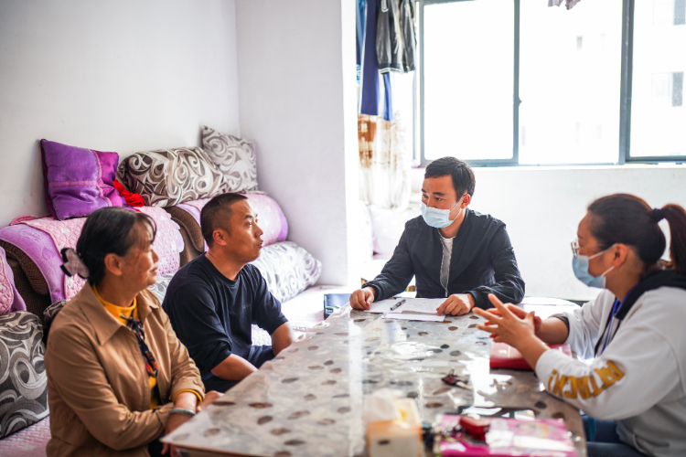 普定县定南街道鑫旺社区工作人员入户同搬迁群众交流,更新后的基础信息将录入大数据智慧管理平台。