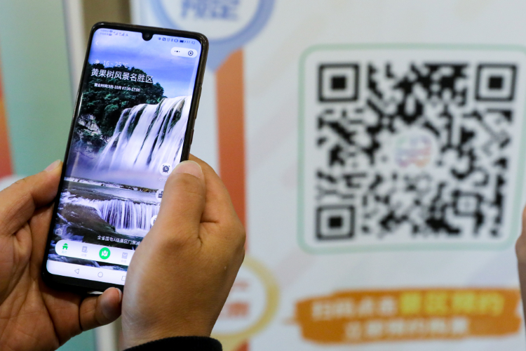 市民在通过“一码游贵州”全域智慧旅游平台了解景区信息。