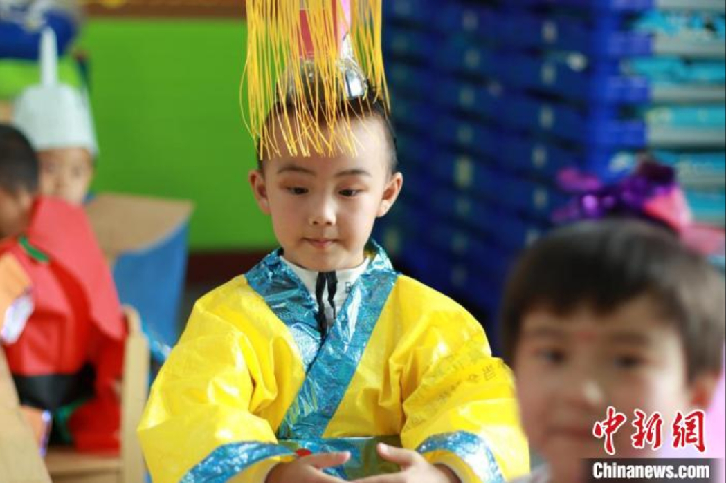 5月底,为迎接“六一”国际儿童节,兰州一所幼儿园的儿童在家长和老师们的指导下,融入天马行空的想象力,将家中废旧物品进行再利用,制作成创意十足的环保服装,登台进行展示。