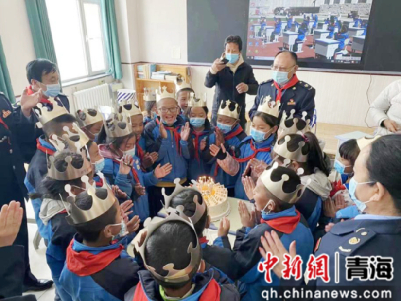 同学们共唱“生日快乐歌”。(图片来源:中新网)