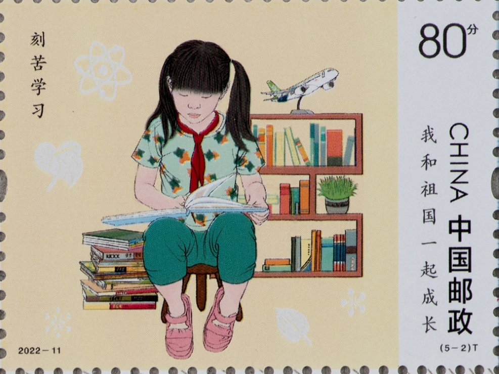 《我和祖国一起成长》特种邮票图案名称分别为热爱祖国、刻苦学习、崇尚科学、强健体魄、尊重劳动。全套邮票面值为5.20元人民币。