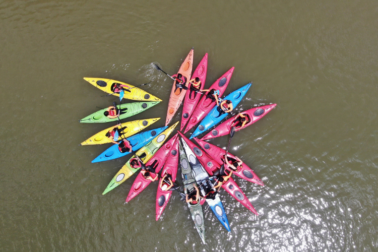 广州市南沙区,一群小学生在蕉门河旁的南沙皮划艇基地进行皮划艇训练,享受水上运动的乐趣。(图片来源:中新社)