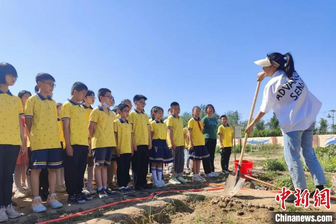 在河北省衡水市利民路小学创设的“耕读苑”劳动基地,各班学生自己设计班牌,查资料,选择农作物种子。在劳动课老师示范指导下,学生们翻土、开畦、施肥、挖沟等技术要领。(图片来源:中新网)