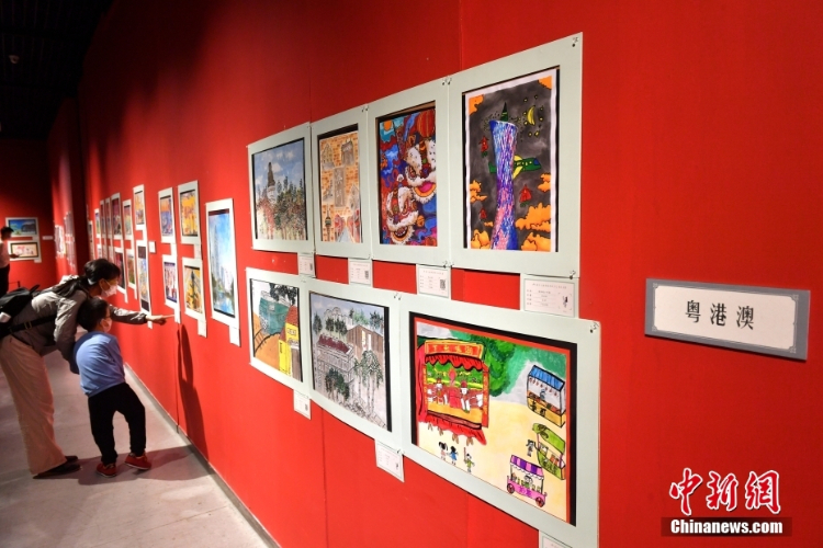 5月27日,以“艺‘述’家”为主题的第十三届海峡两岸少儿美术大展在位于福州的福建省美术馆开展,共展出两岸暨港澳地区以及马来西亚华人地区的280幅优秀少儿作品。图为市民在粤港澳作品展区参观。(图片来源:中新网)