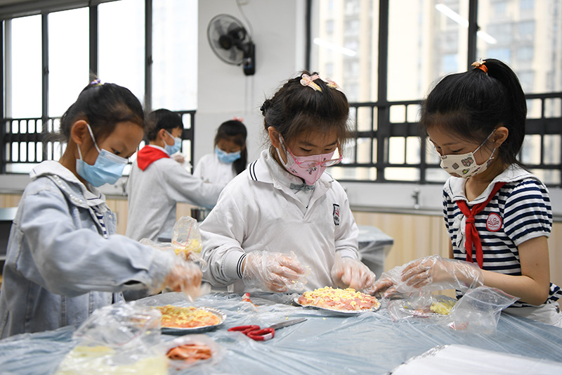 5月27日,长沙市东郡第二小学学生在烘焙课上练习。(图片来源:本文图片除标注外均自新华社)