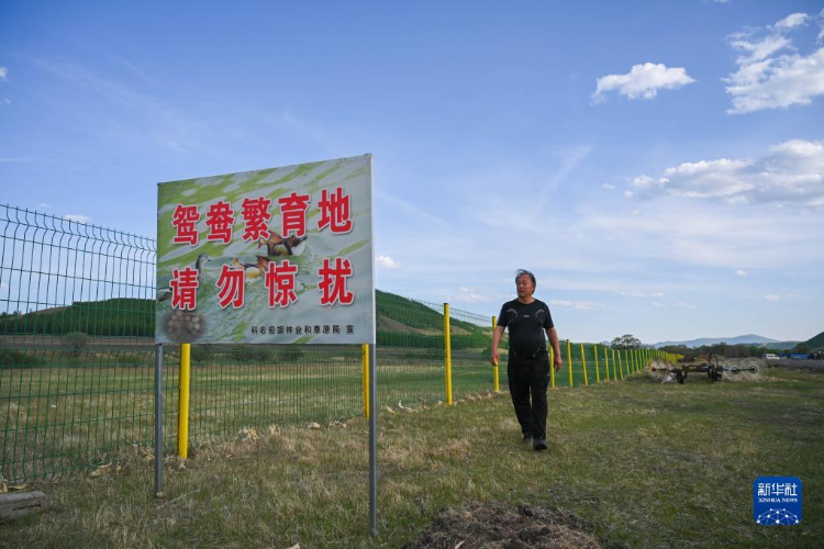 索伦牧场位于内蒙古科尔沁右翼前旗,这里的索伦河谷是鸳鸯的栖息地。每年4月至10月,大批鸳鸯会在此繁殖栖息。为了防止放牧、非法捕鱼等行为干扰鸳鸯,家住牧场的高元智成了这片鸳鸯栖息地的志愿守护者。图为高元智在鸳鸯栖息地的网围栏外围巡护。