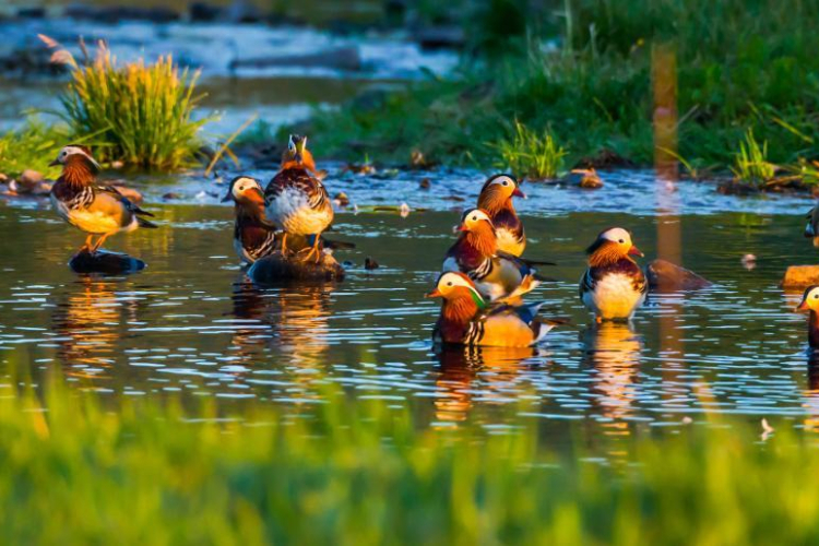 高元智自费在鸳鸯栖息地搭建200多个人工鸟巢,在河滩上种植了约8000棵树苗等,并坚持拍摄这里的鸳鸯。经过多年的守护,索伦河谷候鸟种类增多,鸳鸯数量超过500只。“希望鸳鸯能够得到保护,让这片河谷成为后代的生态财富。”高元智说。图为高元智在鸳鸯栖息地拍摄的鸳鸯。