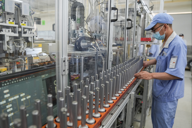 在位于北京经开区的SMC(中国)有限公司厂房内,工人正在工作。(图片来源:新华社)
