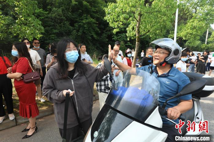 2022年安徽高考拉开帷幕,约47万考生参考圆梦。图为家长为考生加油鼓劲。(图片来源:中新网)