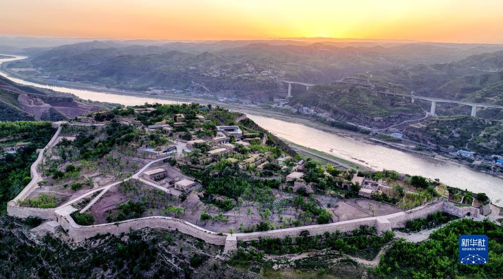 这是6月7日拍摄的吴堡石城(无人机照片)。远处是吴堡县城。(图片来源:本文图片均自新华社)
