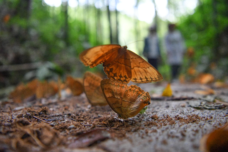 6月8日,蝴蝶在中国·红河蝴蝶谷的小路上停留。(图片来源:新华社)