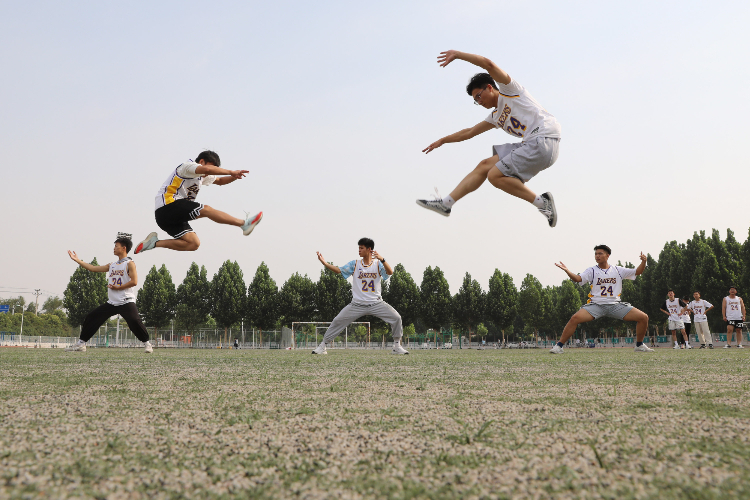高考过后,河南省焦作市温县一中的毕业生来到校园,摆出各种充满青春与活力造型拍摄创意毕业照,定格青春美好回忆。图为高三毕业生在操场上拍摄创意毕业照。(图片来源:新华社)