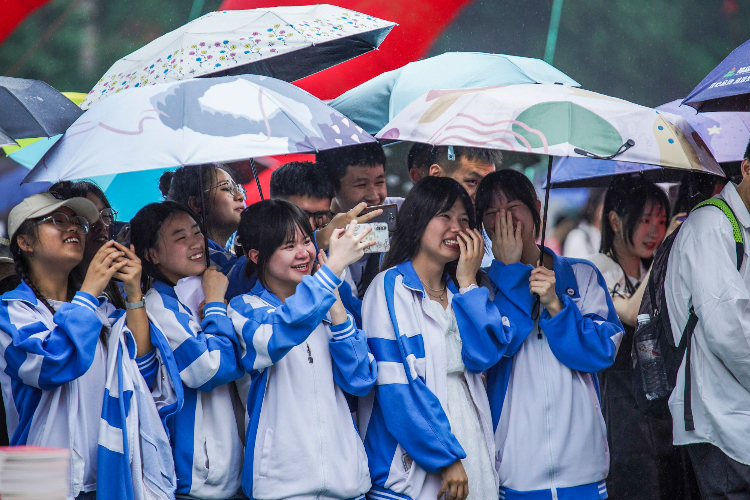 6月9日,贵阳市乌当中学举行高三学生毕业典礼暨成人仪式。图为贵阳市乌当中学高三学生在雨中参加毕业典礼。(图片来源:新华社)