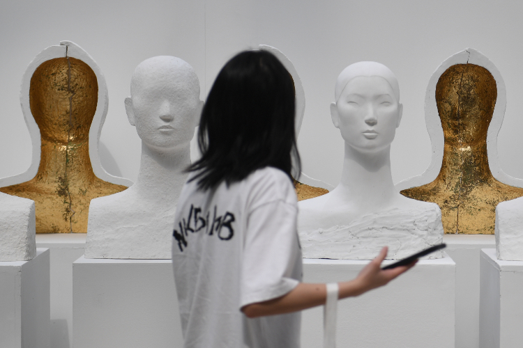 近日,2022年第四届之江国际青年艺术周在浙江杭州举行,中国美术学院3000余组毕业生作品向公众展出。图为6月7日,市民参观中国美术学院雕塑与公共艺术学院毕业生作品。(图片来源:中新社)