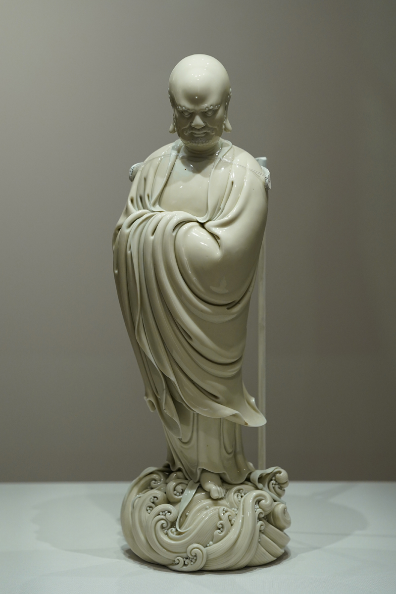 国家一级文物明德化窑白釉达摩立像。(图片来源:中新社)