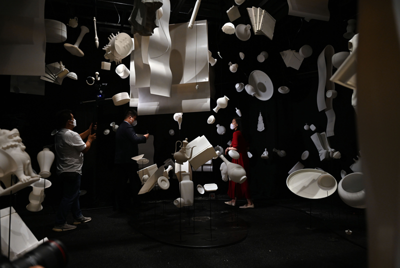 记者在香港故宫文博馆内拍摄。(图片来源:新华社)