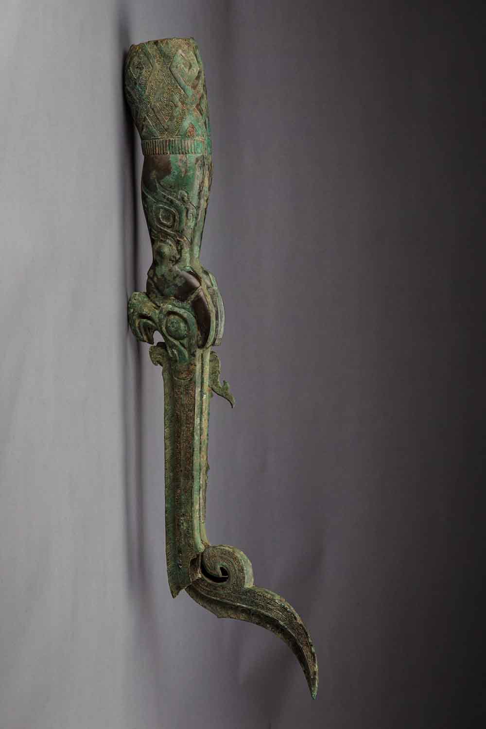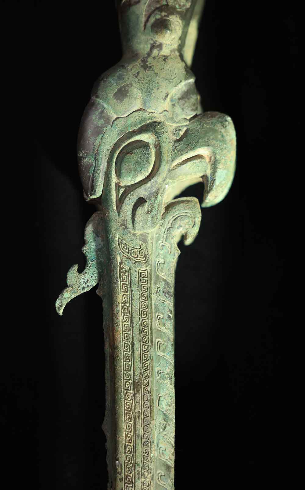 青铜鸟脚人像残部局部。(图片来源:新华社)