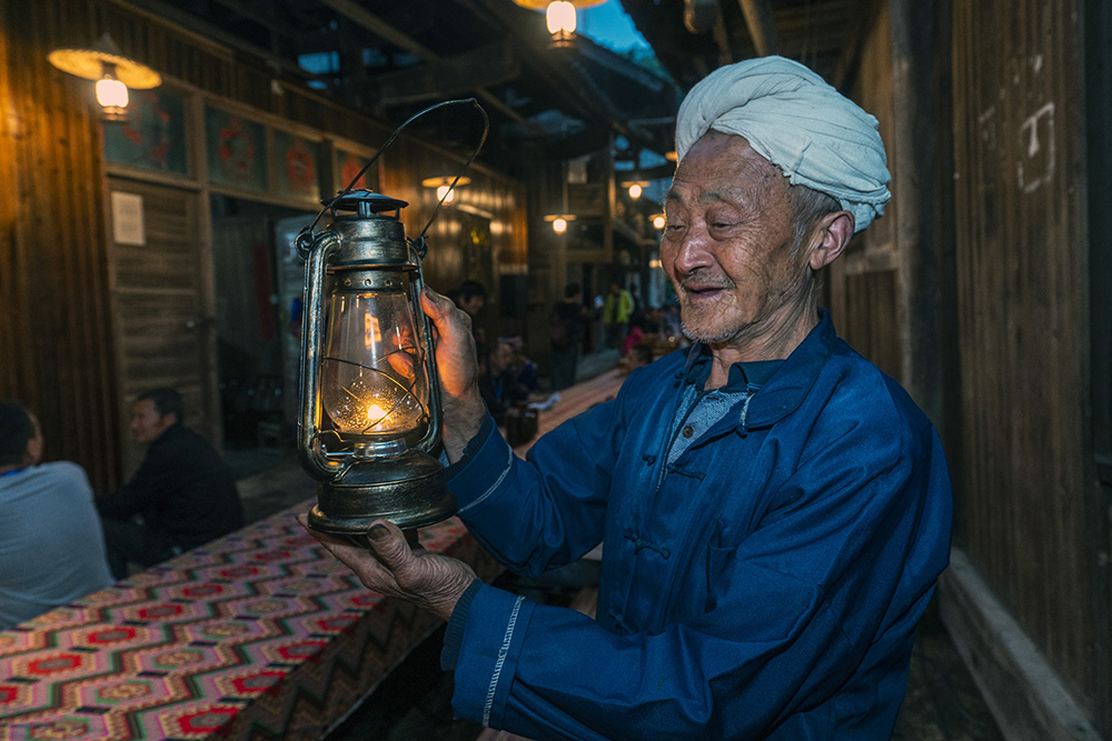 湖北恩施州宣恩县彭家寨两河口老街上,一位八旬老人展示照明用的马灯。(图片来源:中新社)