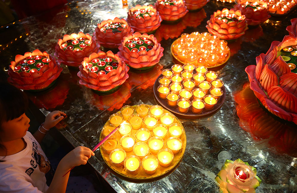 海南三亚:元宵节点灯祈福。(图片来源:中新社)