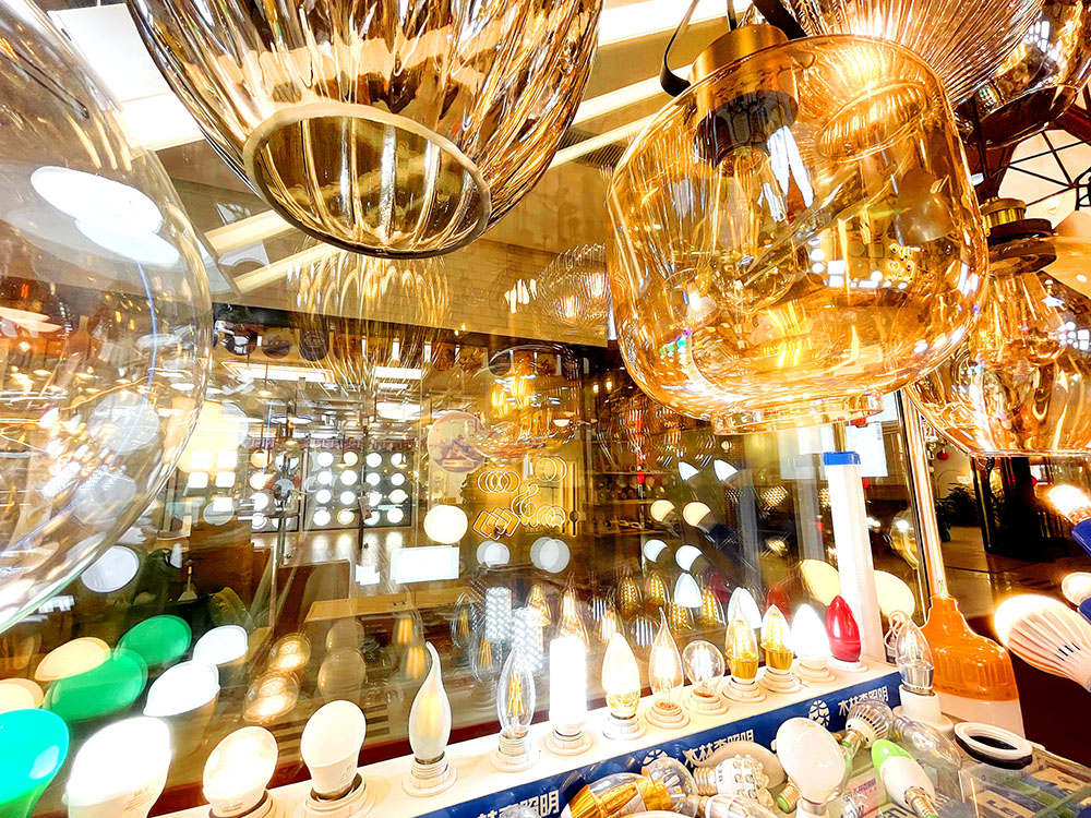 北京十里河灯具市场琳琅满目的节能灯。(图片来源:新华社)