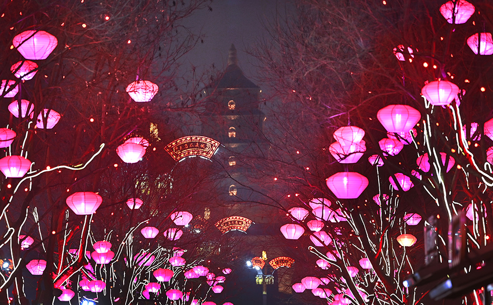 西安市大唐不夜城点亮璀璨夺目的灯光。(图片来源:新华社)