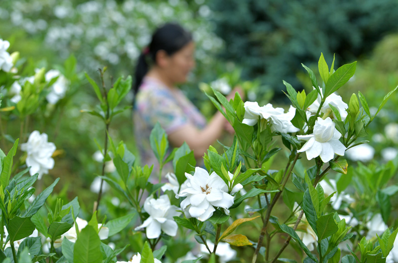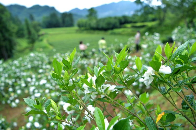 夏日里,湖北省恩施土家族苗族自治州宣恩县农民种植的栀子花盛开。沁人心脾的栀子花香在吸引游客游玩的同时,也带动了农民增收。当地近年来在实施乡村振兴的过程中,引导农民对低产田进行种植结构调整。用田间地头的花香、瓜果香丰富乡村旅游的内容,助力山区农民过上好日子。