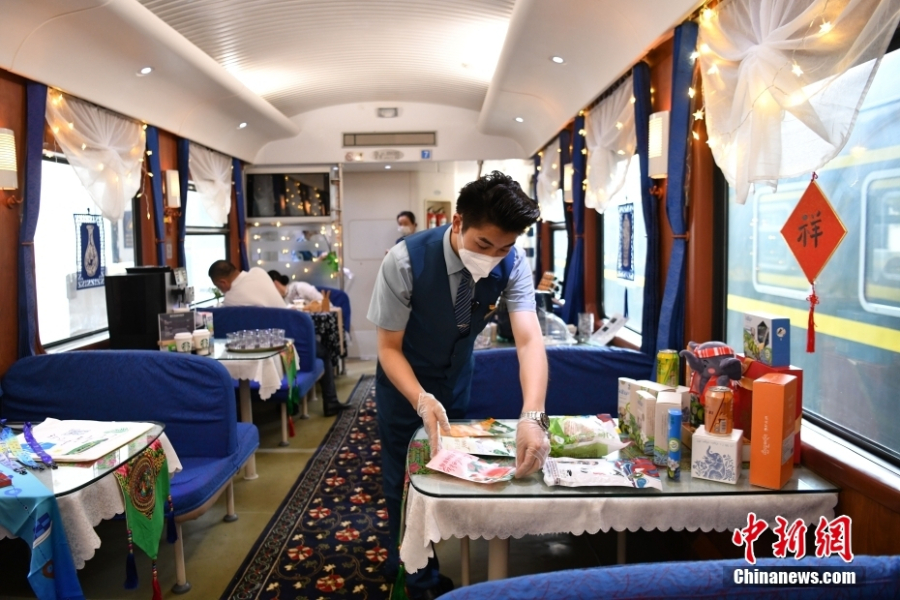 中老铁路列车员展示特色工作服。(图片来源:中新网)