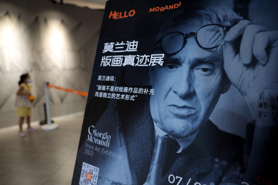 据了解,乔治·莫兰迪(1890-1964年)生于意大利博洛尼亚,是20世纪最受赞誉的知名画家之一。图为当日,“莫兰迪版画真迹展”正在北京来福士中心展出。(图片来源:本文图片均自欧洲时报特约记者卞戈摄)