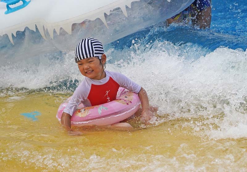 7月1日,孩子在位于南昌市湾里管理局的保利冰雪水世界戏水游玩。(图片来源:新华社)