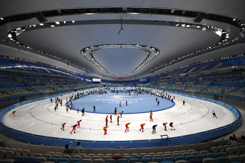 7月9日,市民在国家速滑馆内滑冰。(图片来源:中新社)