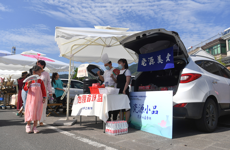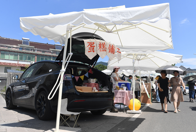 7月9日,浙江绍兴,尾箱集市吸引众多游客前来消费。盛夏时节,浙江绍兴上虞上浦镇大善小坞村组织乡村尾箱集市,吸引游客消费。(图片来源:本文图片除标注外均自中新社)