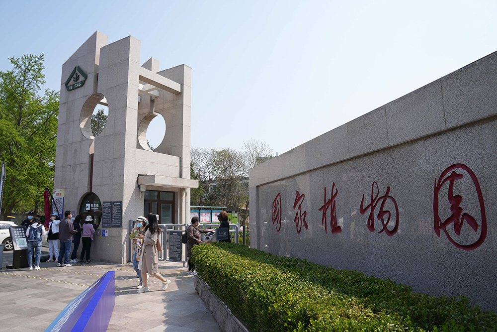 游客在国家植物园入口处参观。(图片来源:新华社)