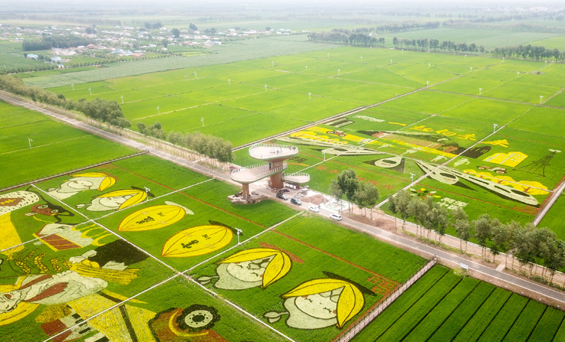 北京市通州区台湖镇稻小蟹艺术农场内的五彩稻田进入最佳观赏期,一幅水田阡陌、青翠宜人的生态田园画卷徐徐展开。(图片来源:《北京日报》)