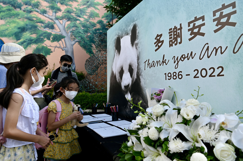 海洋公园于“香港赛马会四川奇珍馆”外设置吊唁册,馆内亦摆放悼念安安的图片及鲜花。
