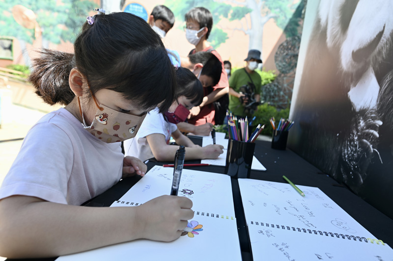 7月21日,小朋友悼念大熊猫安安。(图片来源:中新社)
