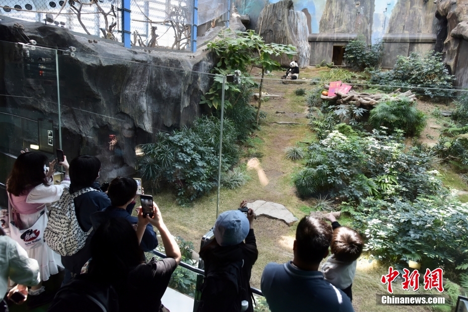 资料图为香港市民参观大熊猫安安。(图片来源:中新网)